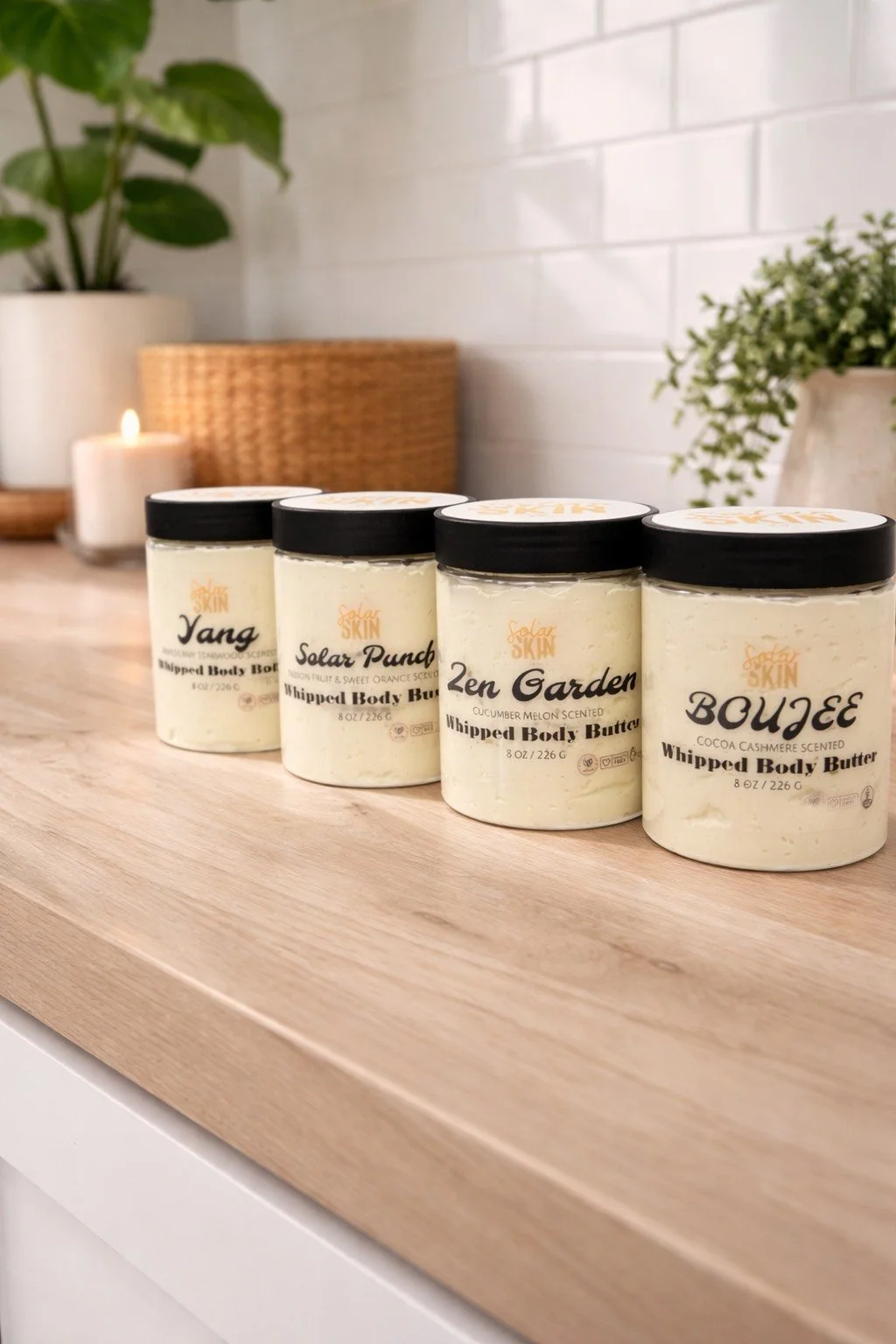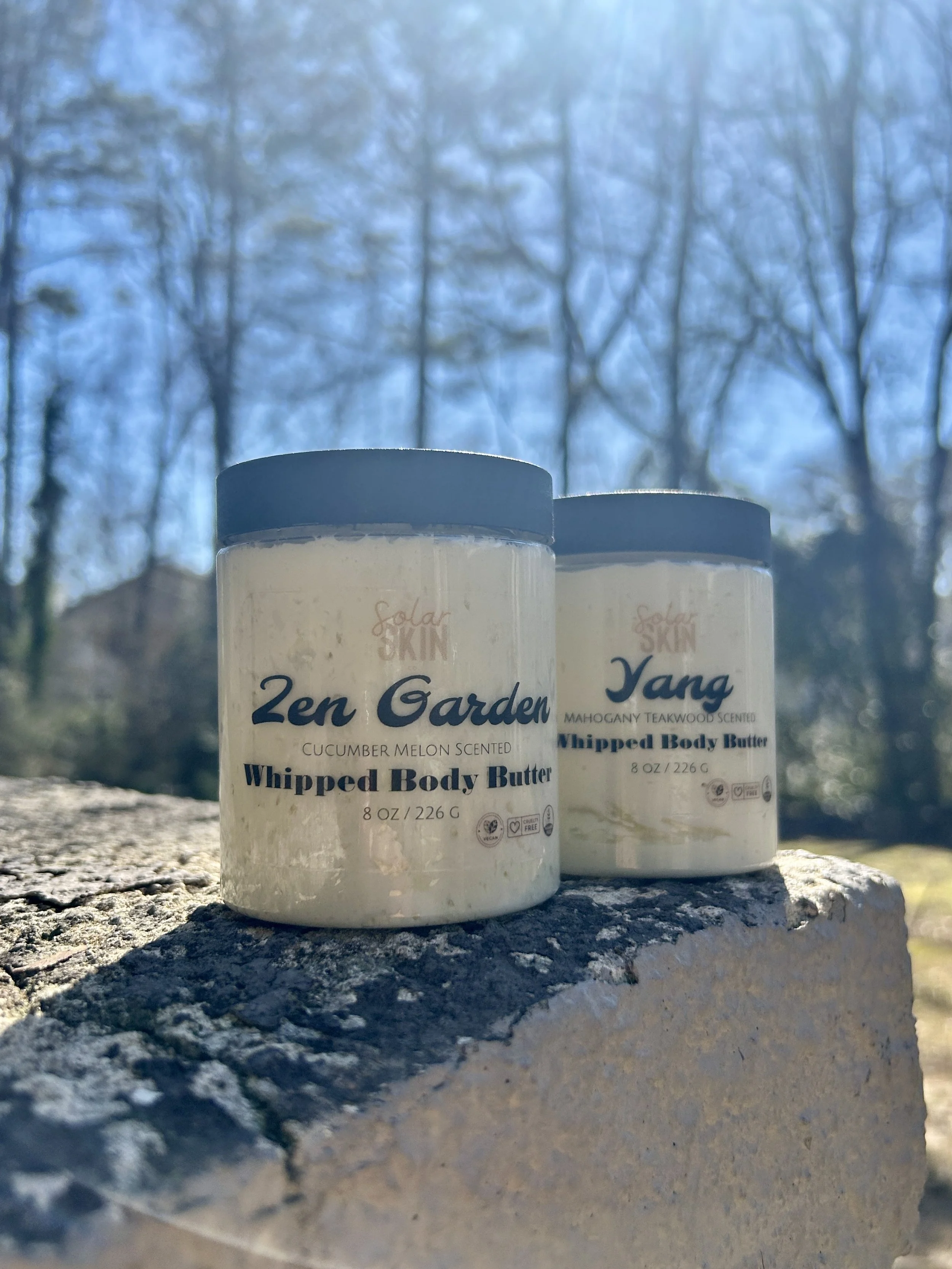 Welcome! With Solar Skin, we pride our Body Butters in being 100% plant derived. We do not test on animals, and our products are completely preservative and chemical free. Our Body Butters are made in small batches by hand to ensure quality and integrity. Additionally, each of our butters are paired with a correlating name to fulfill the aimed aesthetic.